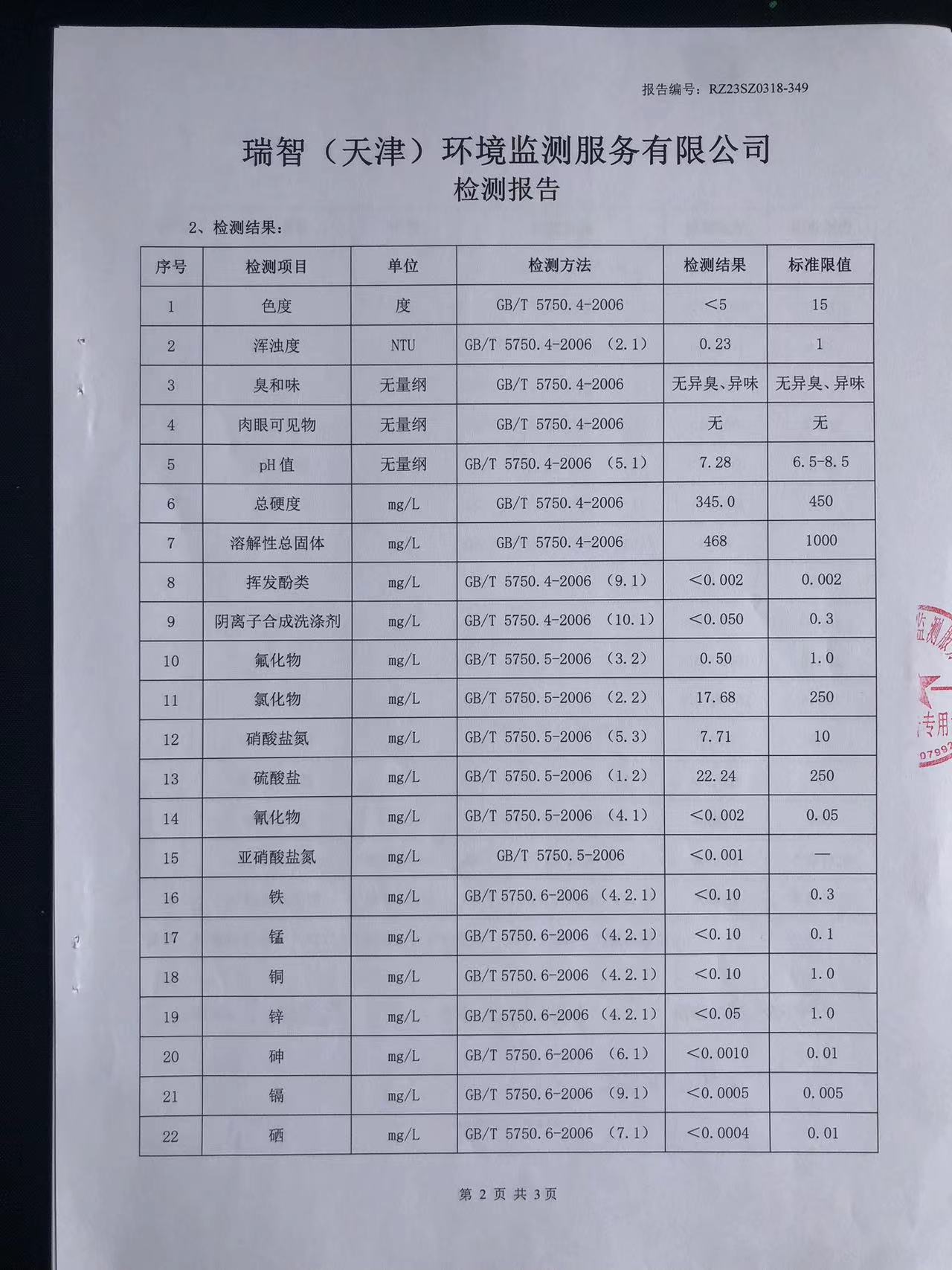 2023年3月份水質(zhì)檢測(cè)報(bào)告