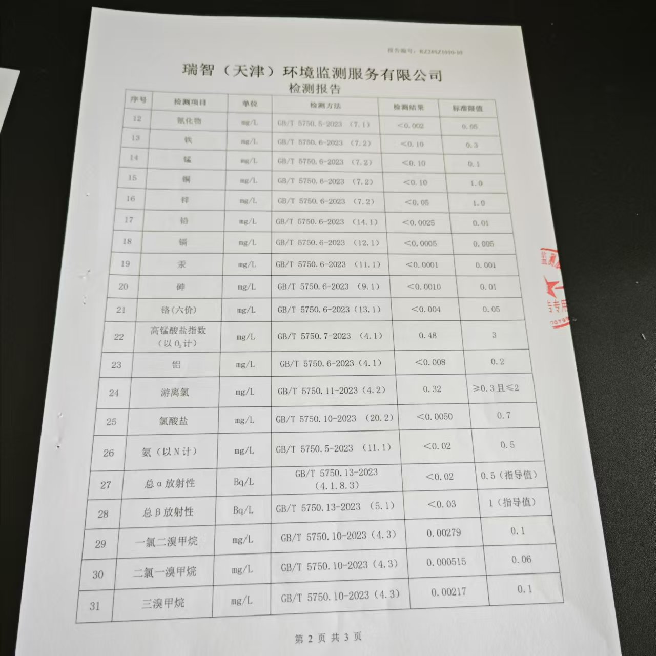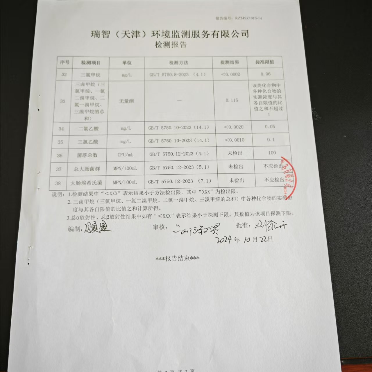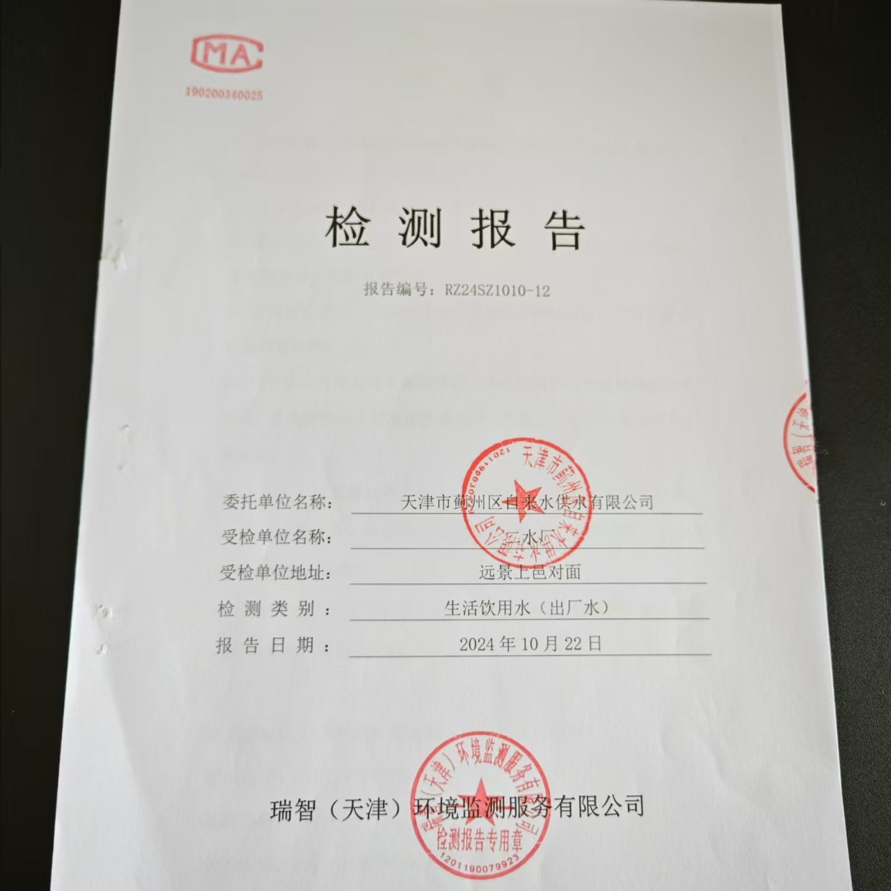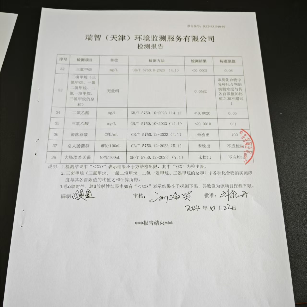 2024年10月份水質(zhì)檢測報告