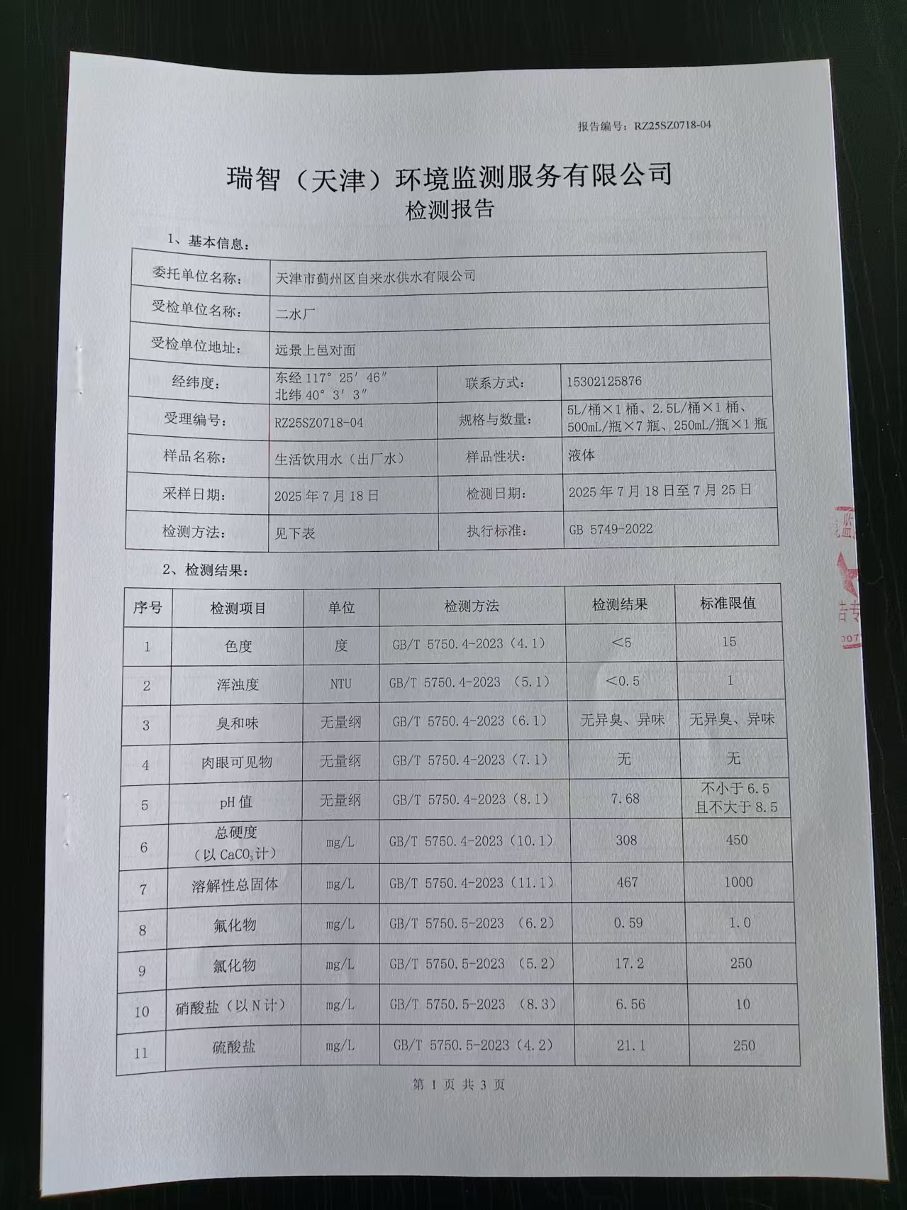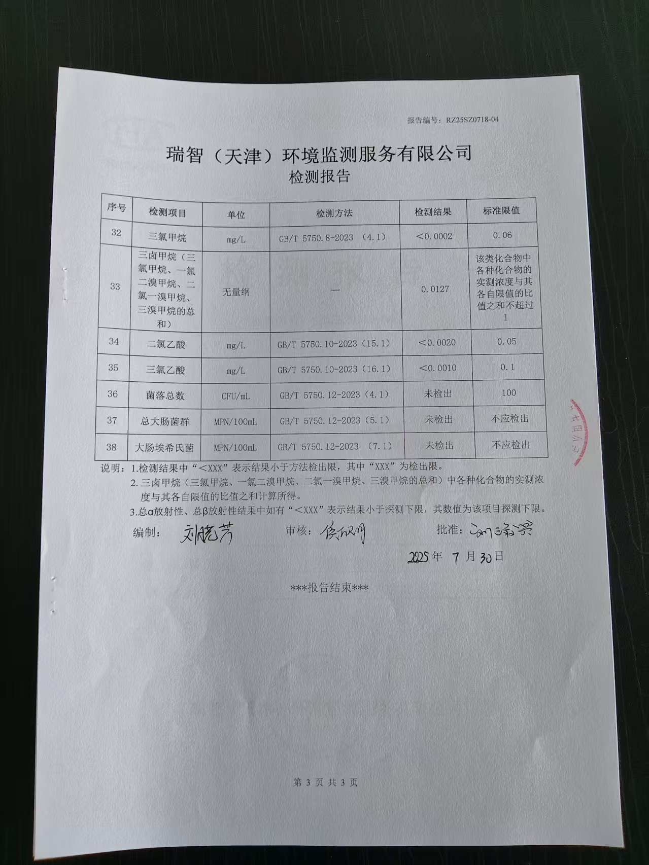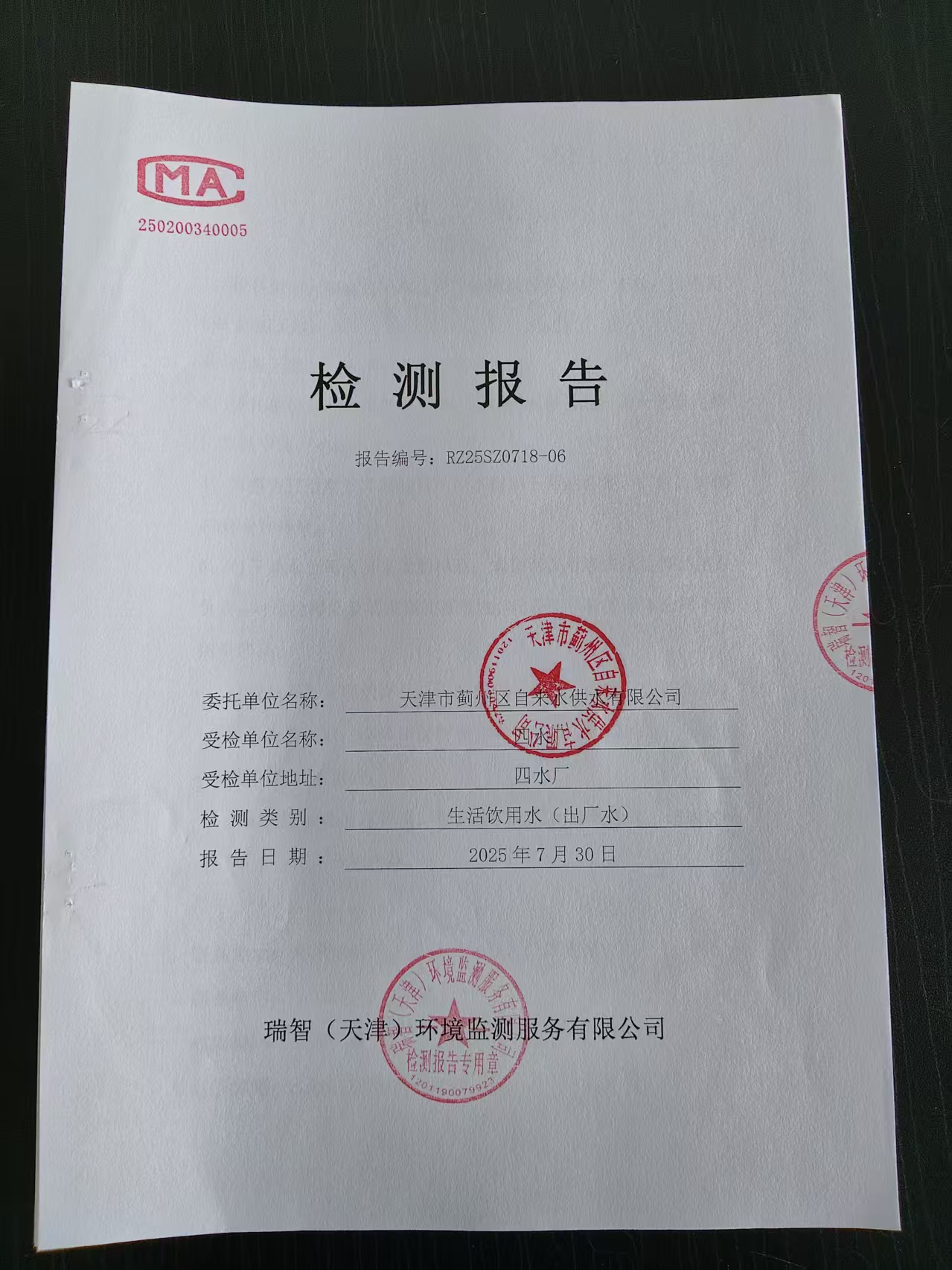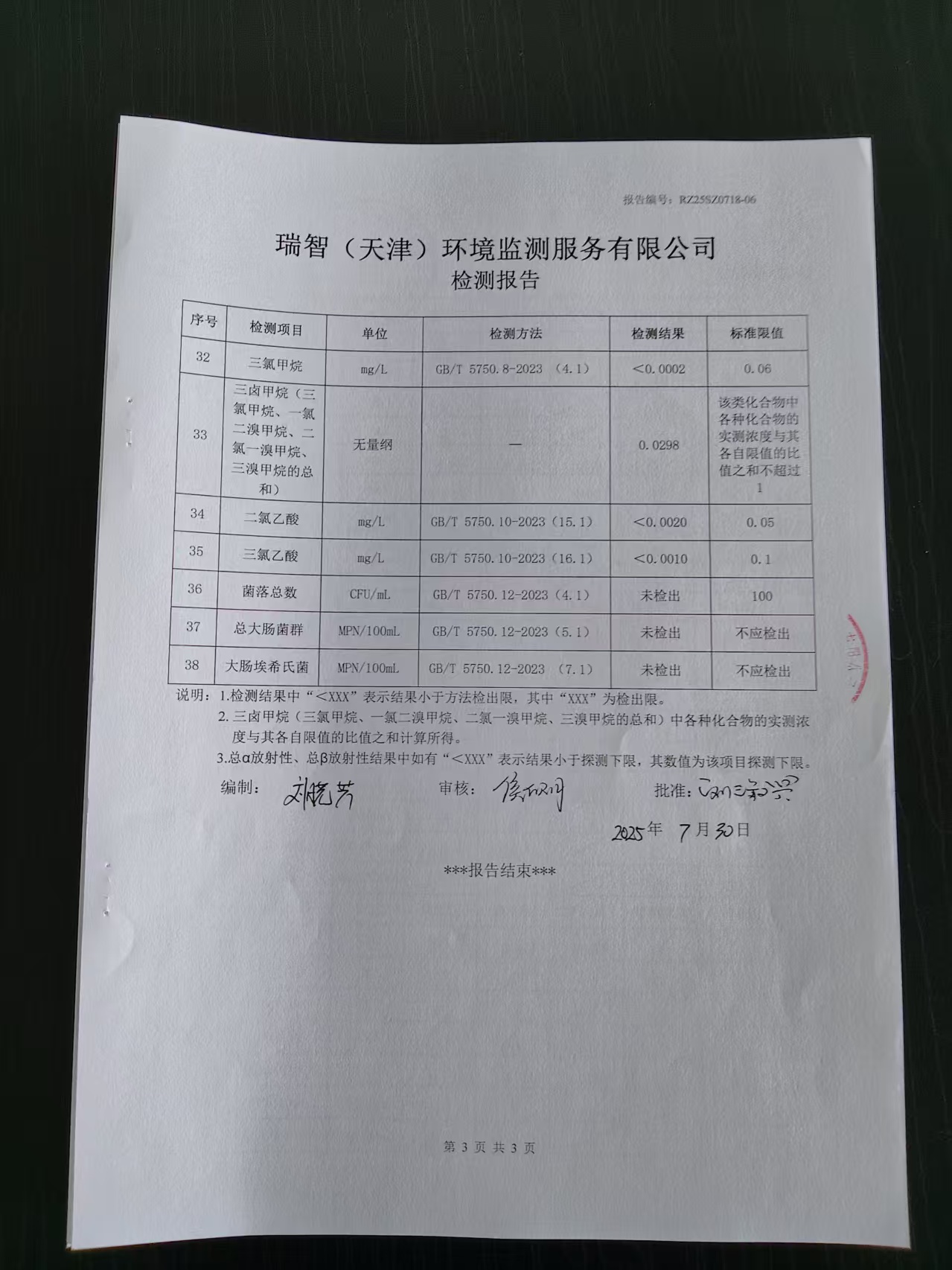 2025年7月份水質(zhì)檢測(cè)報(bào)告