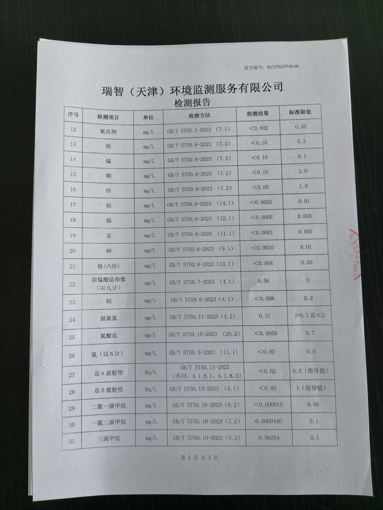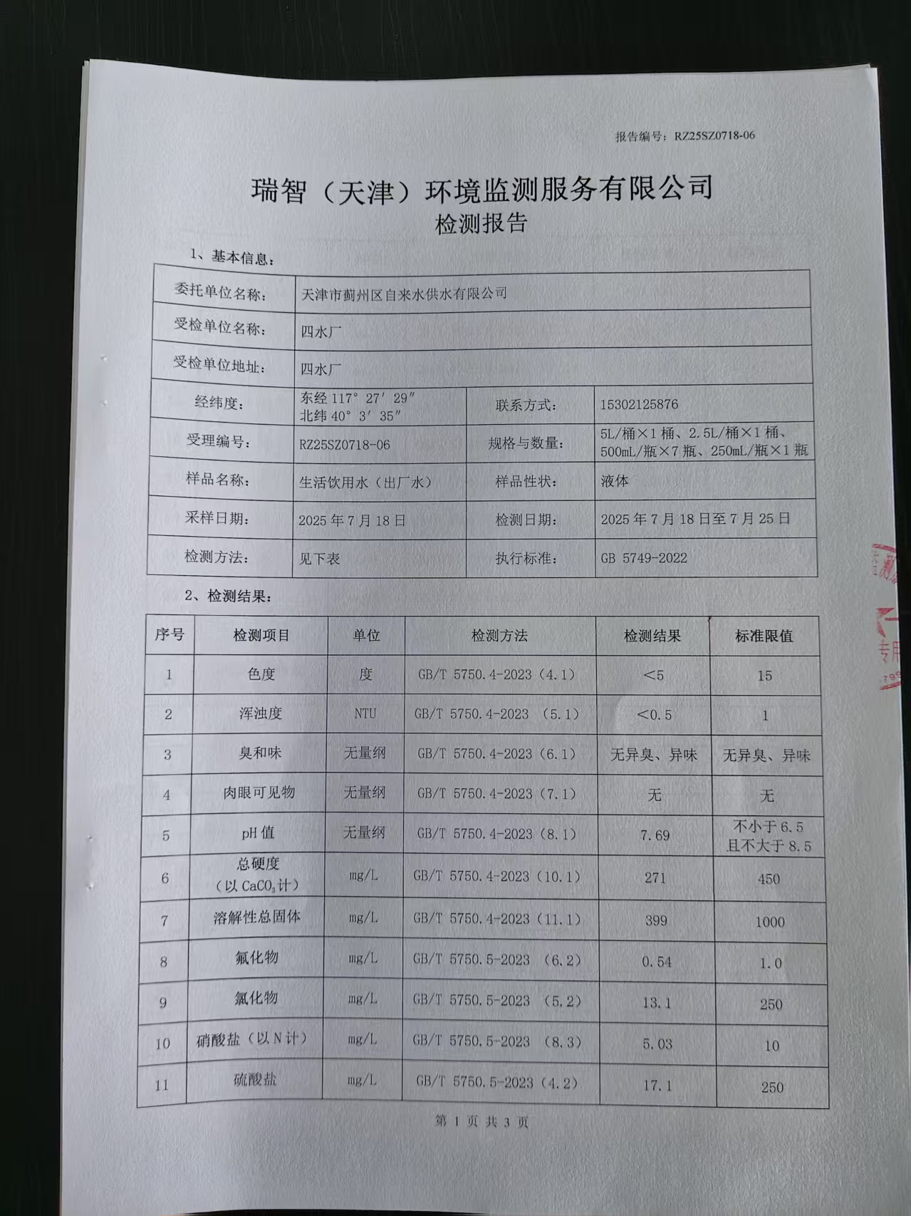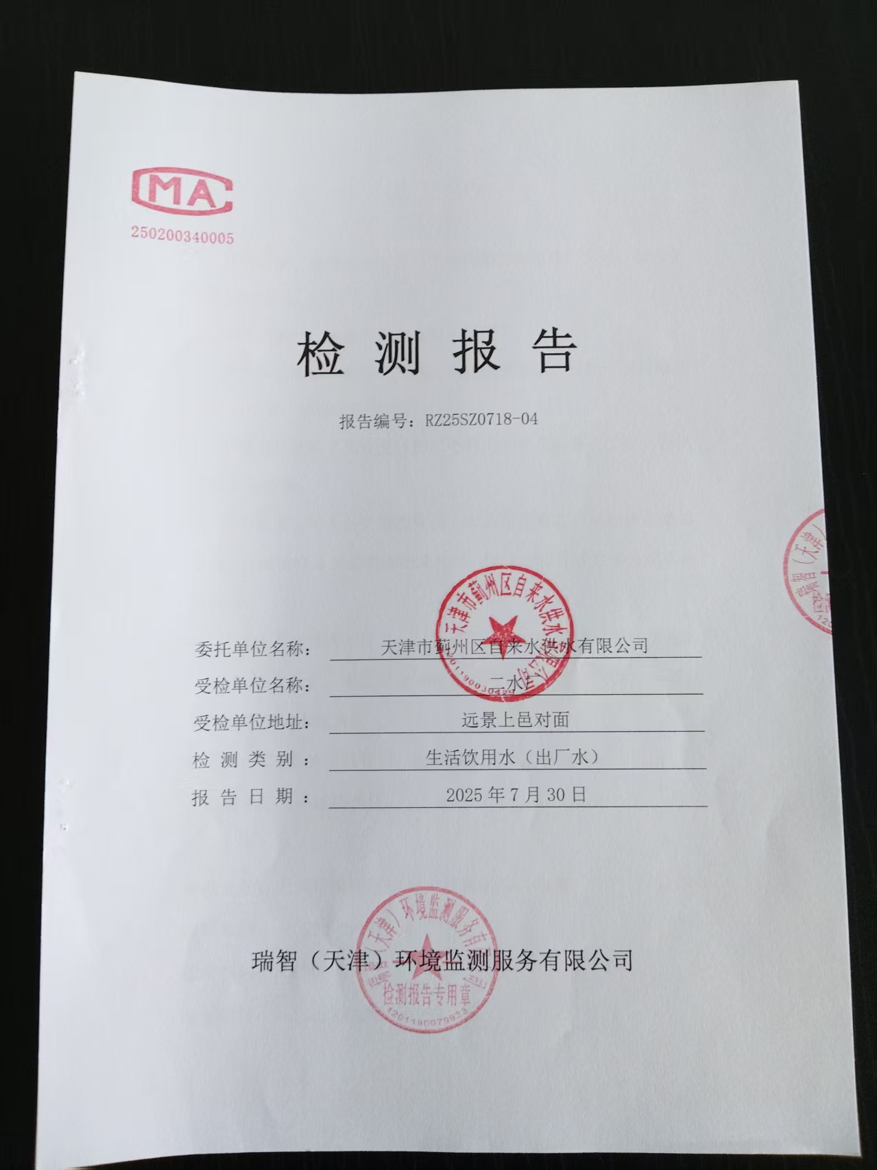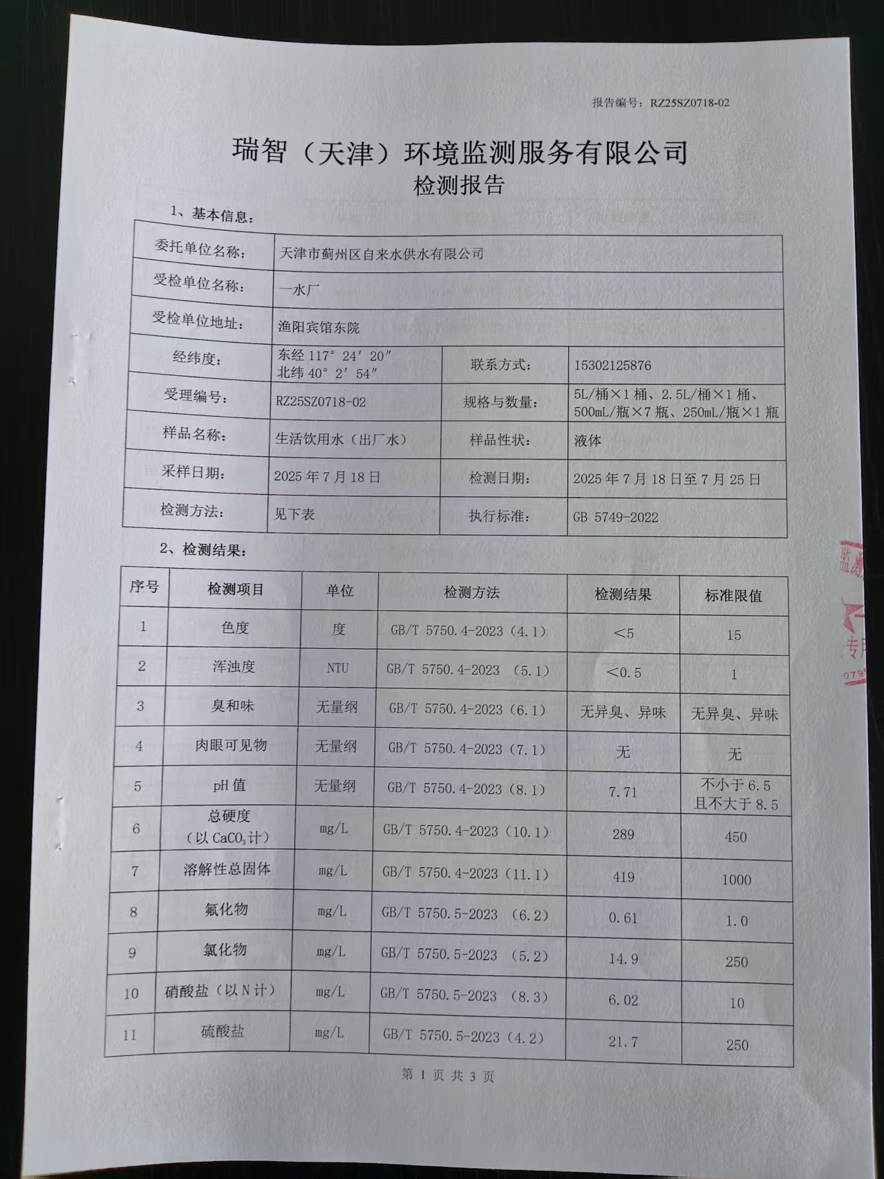 2025年7月份水質(zhì)檢測(cè)報(bào)告